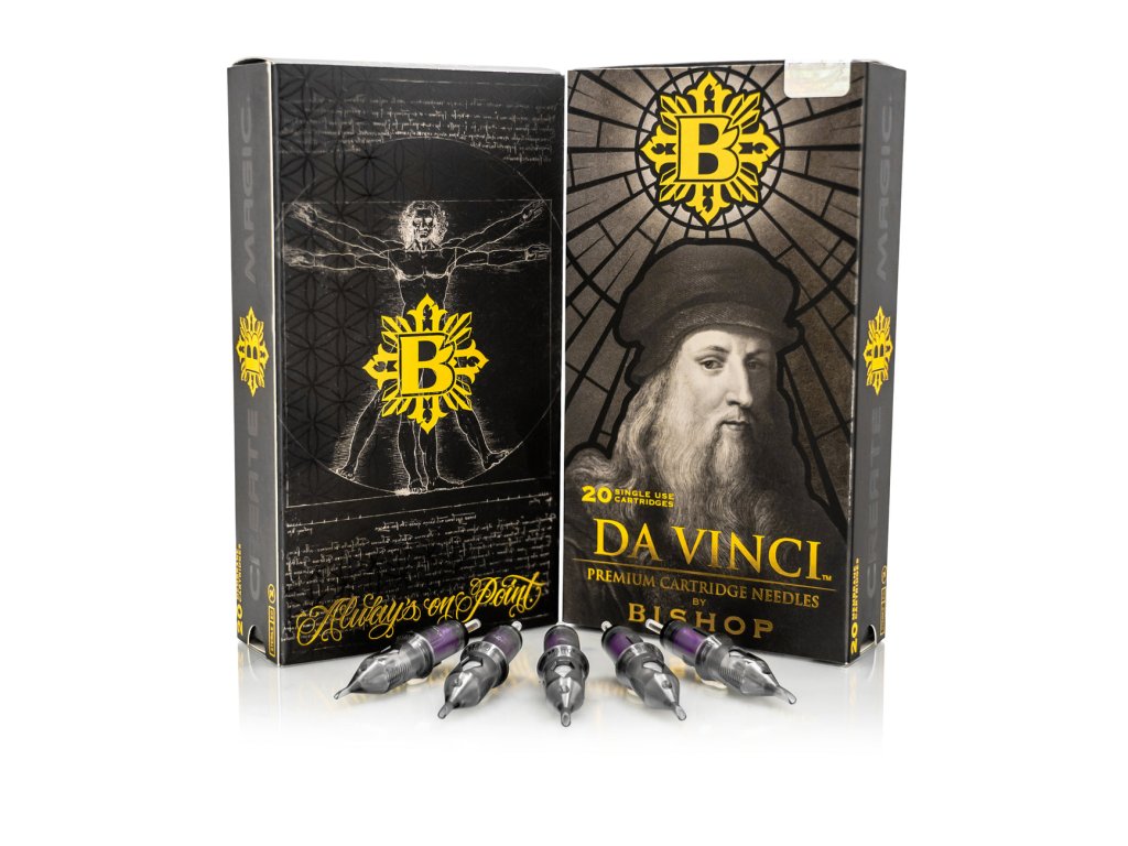 Cartridge s jehlami Da Vinci V2 jsou vylepšené tetovací jehly na tetování od společnosti Bishop Tattoo Supply. Tyto prémiové kazety, navržené umělci Carlosem Torresem a Francem Vescovim s jejich společnými 50letými zkušenostmi v oboru, jsou navrženy pro lepší průtok inkoustu a přesnost při tetování. Tetovací jehly Bishop Da Vinci V2 jsou vyrobeny z lékařské nerezové oceli 304, mají na míru tvarované plastové tělo zabraňující stranovému pohybu jehly a větrací otvor pro proudění inkoustu bez rozstřikování. Jsou kompatibilní s gripy a strojky, které přijímají univerzální patrony typu Cheyenne, a obsahují bezpečnostní membránu zabraňující zpětnému toku inkoustu.
