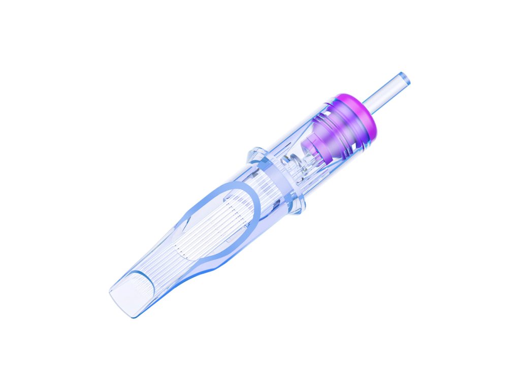 Mírně zakřivené hroty: Ploché špičky těla cartridge mají mírně zakřivené hroty, což umožňuje efektivnější využívání okrajů magnum jehel. Skvěle fungují se zakřivenými i rovnými magnum konfiguracemi jehel.